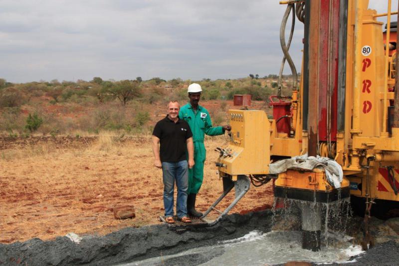 Die lange Vorbereitung hat sich gelohnt, der Brunnen in Ndunguni ist erfolgreich gebohrt.